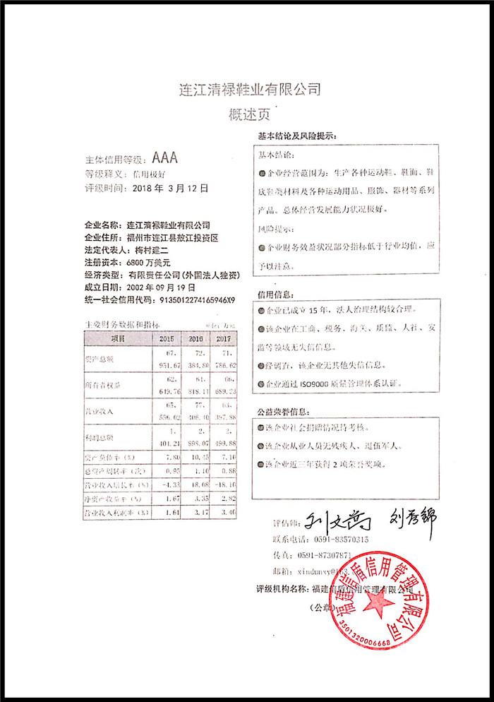 連江清祿鞋業有限公司 XDPJ201803166