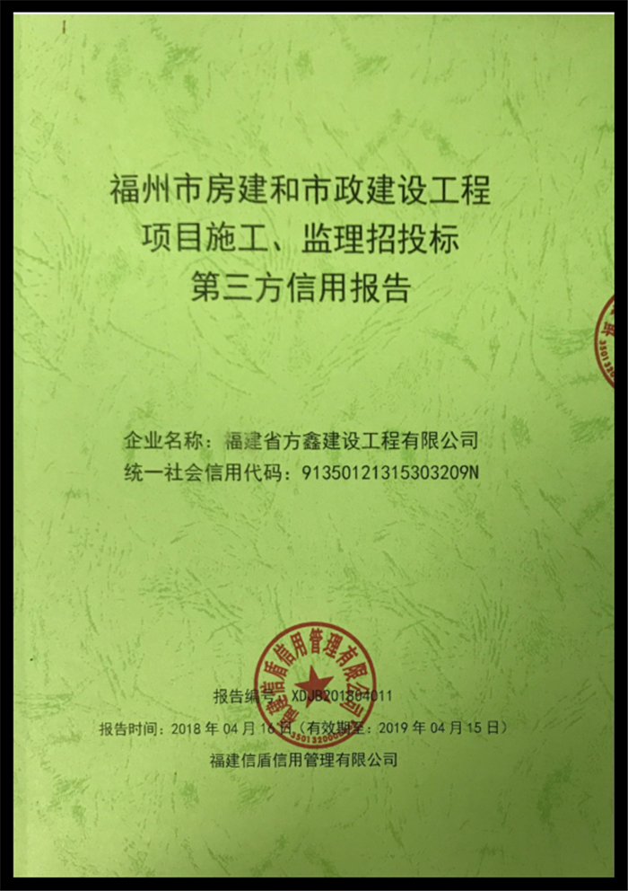 福建省方鑫建設工程有限公司 XDJB201804011