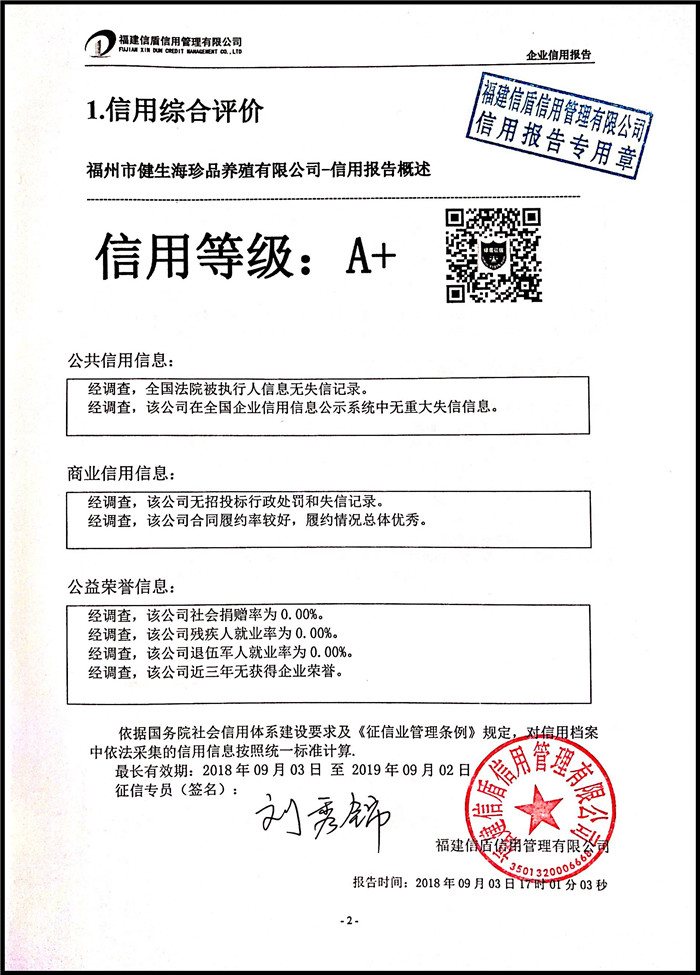 福州市健生海珍品養殖有限公司 XDBD201809002
